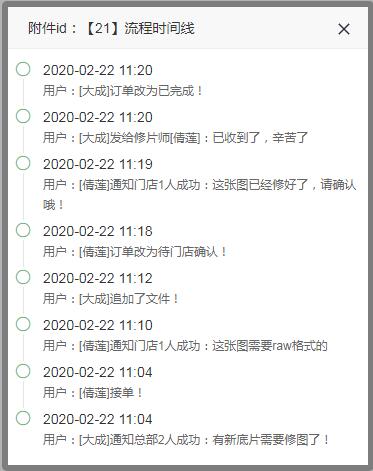 總部修圖看似簡單的流程,門店上傳-總部下載修后上傳-門店確認(rèn)或客戶確認(rèn),開發(fā)過程中也走了不少彎路,以致開發(fā)的周期有點(diǎn)長。總部修圖是一條流程時(shí)間線,先看下流程時(shí)間線長什么樣。