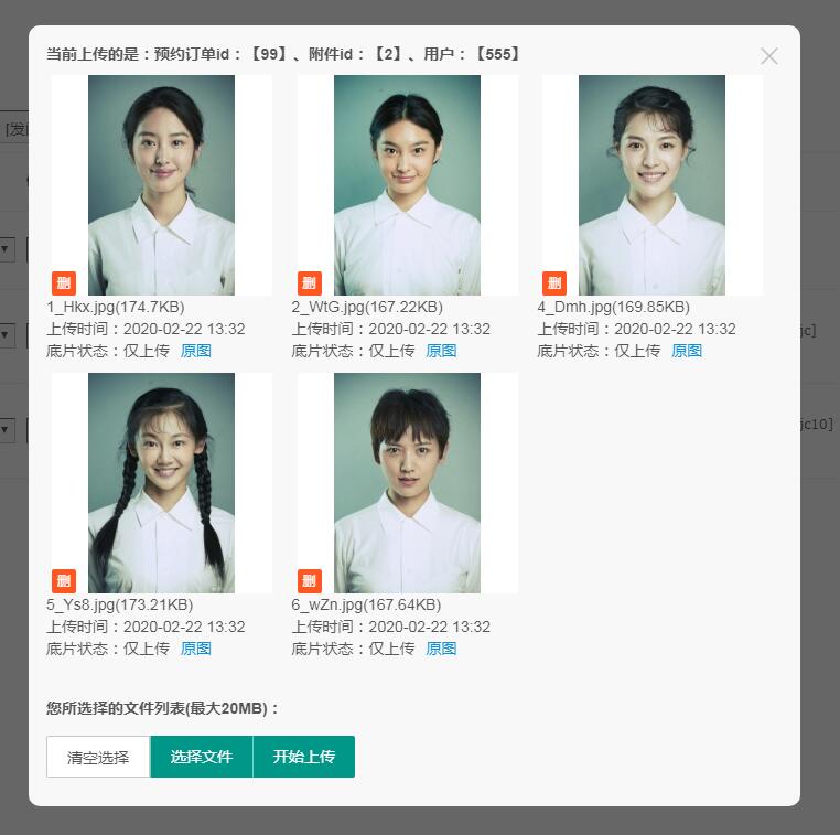 [看點(diǎn)]修后底片上傳:采用彈出層方式批量添加,新上傳圖片會(huì)即時(shí)顯示在列表中,點(diǎn)擊圖片會(huì)彈出放大圖片預(yù)覽。