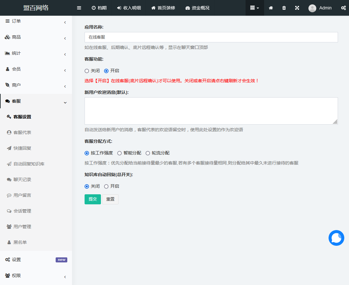 顧客端溝通面板 后臺(tái)客服功能截圖