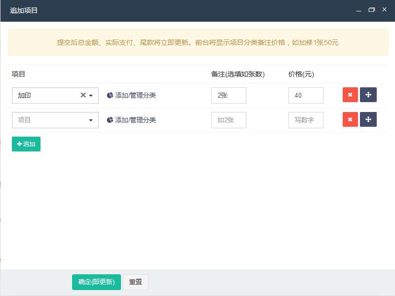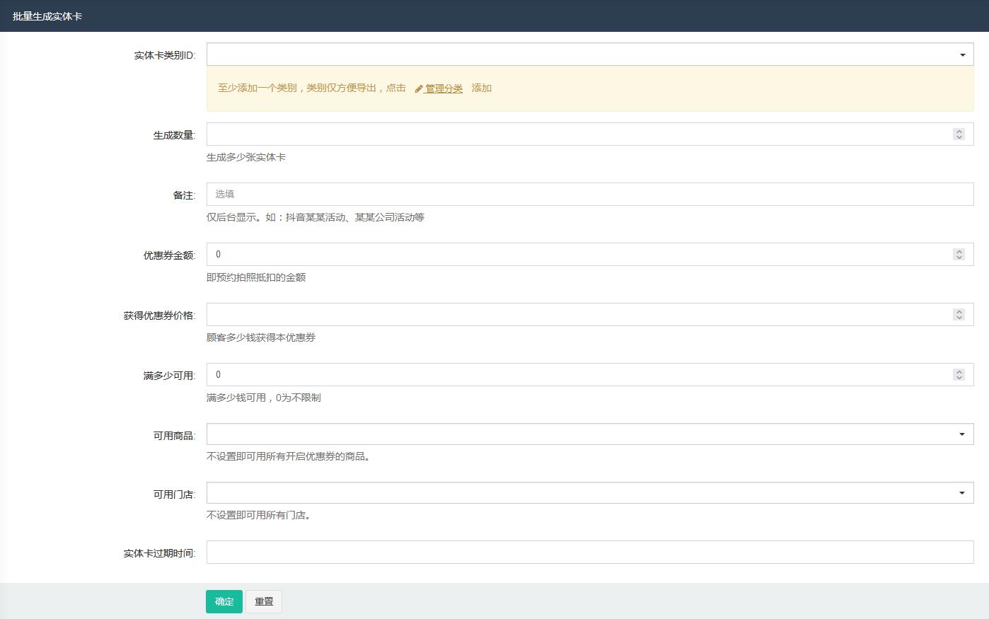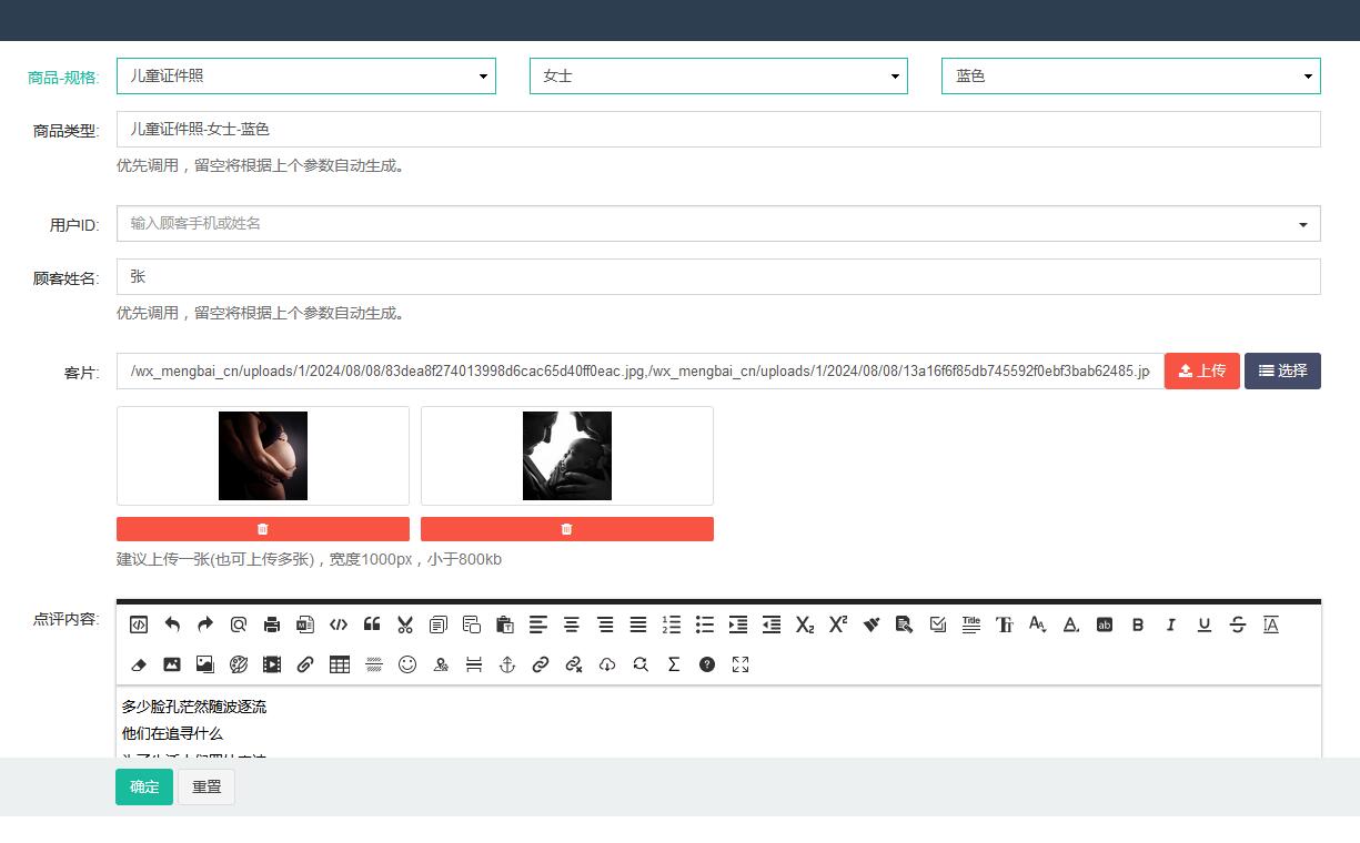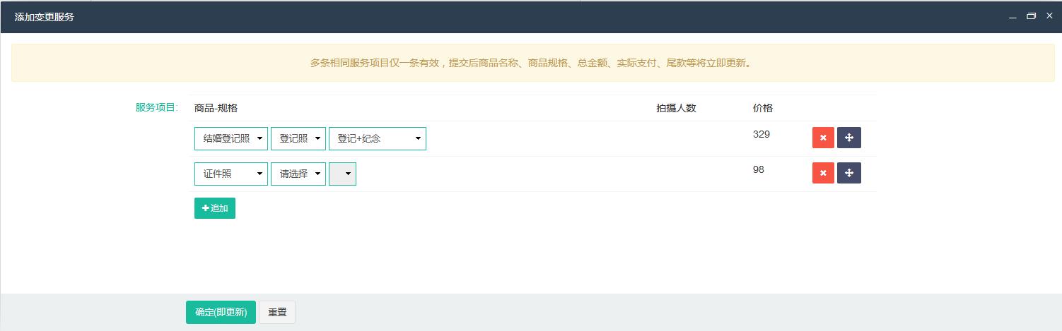 | 本次主要新增實(shí)體卡拍攝碼、客片秀、訂單相關(guān)功能(改檔期調(diào)用前臺(tái),變更服務(wù)、追加項(xiàng)目、優(yōu)惠券核驗(yàn)、拍攝碼核驗(yàn),尾款收款方式,訂單來(lái)源提示)、底片/選片/修圖接單圖片可設(shè)置保存時(shí)長(zhǎng)等 / 實(shí)體卡拍攝碼功能介紹 / 實(shí)體卡可用于企業(yè)發(fā)放給員工的福利,顧客通過(guò)實(shí)體卡背面刮卡區(qū)的拍攝碼和二維碼兌換成優(yōu)惠券,預(yù)約檔期時(shí)使用優(yōu)惠券預(yù)約,也可以到店使用拍攝碼核驗(yàn),兌換拍攝碼做了防刷機(jī)制,一天兌換三次出錯(cuò)就會(huì)提示錯(cuò)誤次數(shù),一天出錯(cuò)超過(guò)10次改天才可兌換。1. 后臺(tái)界面展示 批量生成實(shí)體卡券 按分類導(dǎo)出實(shí)體卡券便于制作 可以直接在后臺(tái)核驗(yàn)拍攝碼 2. 前臺(tái)界面展示 也可以在前臺(tái)兌換拍攝碼,有防刷機(jī)制 / 客片秀功能介紹 / 客片秀用于商品詳情頁(yè)展示客片和點(diǎn)評(píng),延長(zhǎng)用戶留存時(shí)間,提高轉(zhuǎn)化率,不同商品客片不一樣,可上傳單圖或者多圖,前臺(tái)采用瀑布流方式。1. 后臺(tái)界面展示 數(shù)據(jù)列表 添加編輯客片秀 / 編輯訂單新增功能介紹 / 編輯訂單新增改檔期調(diào)用前臺(tái),變更服務(wù)、追加項(xiàng)目、優(yōu)惠券核驗(yàn)、拍攝碼核驗(yàn),尾款收款方式,訂單來(lái)源提示。 1. 改檔期調(diào)用前臺(tái) 通過(guò)后臺(tái)變更前臺(tái)可預(yù)約的檔期,更改后公眾號(hào)會(huì)同顧客發(fā)送【客戶預(yù)約時(shí)間已修改通知】 2. 變更服務(wù)和追加項(xiàng)目 可變更服務(wù)和新增多種服務(wù) 可追加項(xiàng)目,如加印、加修、底片打包等等,項(xiàng)目分類可自定義 3. 優(yōu)惠券、拍攝碼核驗(yàn) 4. 來(lái)源提示和尾款方式 可自定義收款方式 /其它更新 / 1、底片、選片、修圖接單圖片新增保存時(shí)長(zhǎng)。 2、前臺(tái)免訂金抖音和美團(tuán)選項(xiàng)分別。 3、生成檔期新增是否更新原有剩余檔位數(shù)選項(xiàng)。 4、多處前臺(tái)界面優(yōu)化。 以上為僅為部分功能介紹,更多的功能請(qǐng)到本公眾號(hào)演示站體驗(yàn),或聯(lián)系以下微信號(hào)體驗(yàn)后臺(tái) |